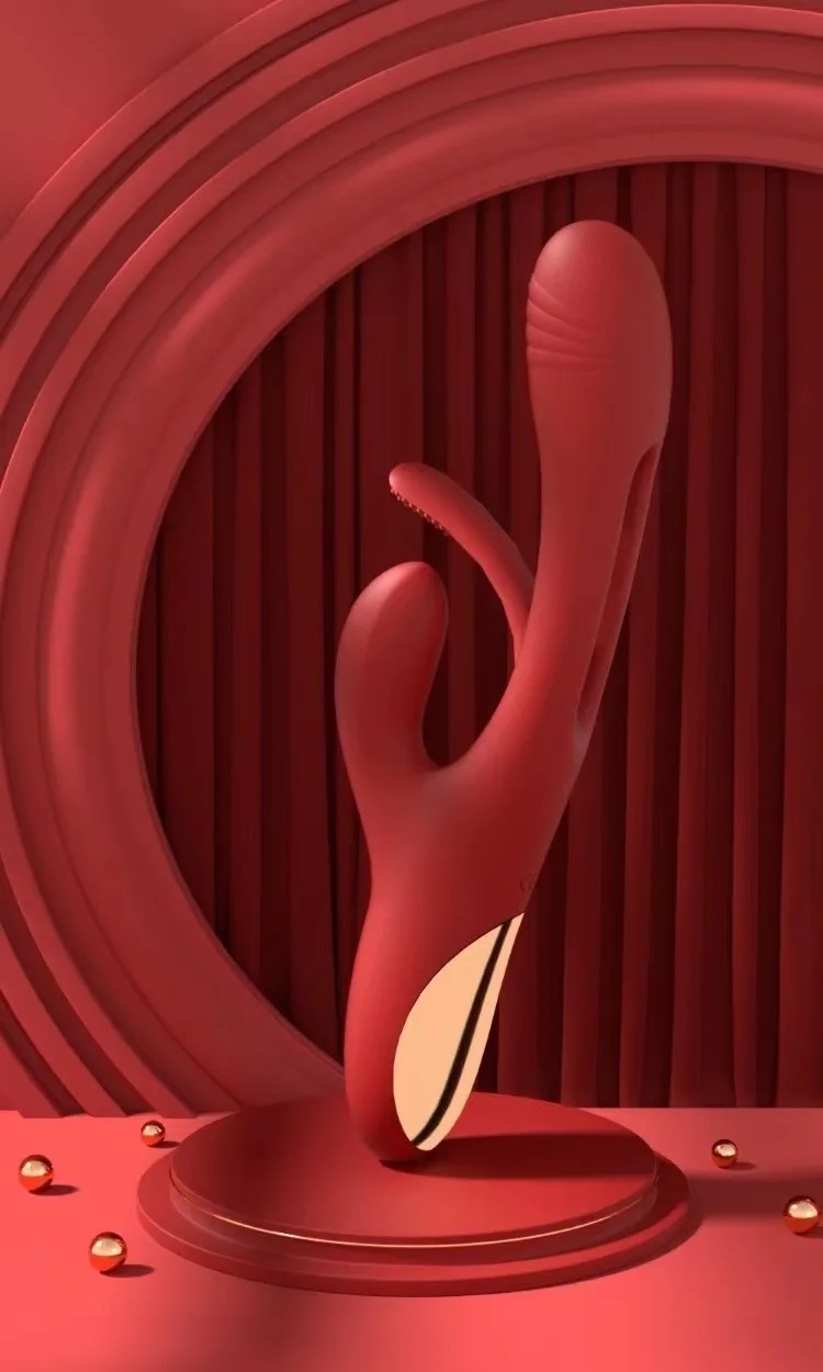 Carmine Vajina Anüs Klitoris Pürüzsüz Silikon Su Geçirmez Şarjlı Rabbit Vibratör