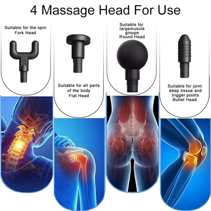 Yeni Nesil Güçlü 4 Farklı Başlıklı Hızlı Şarjlı Kas ve Vücut Masaj Tabancası